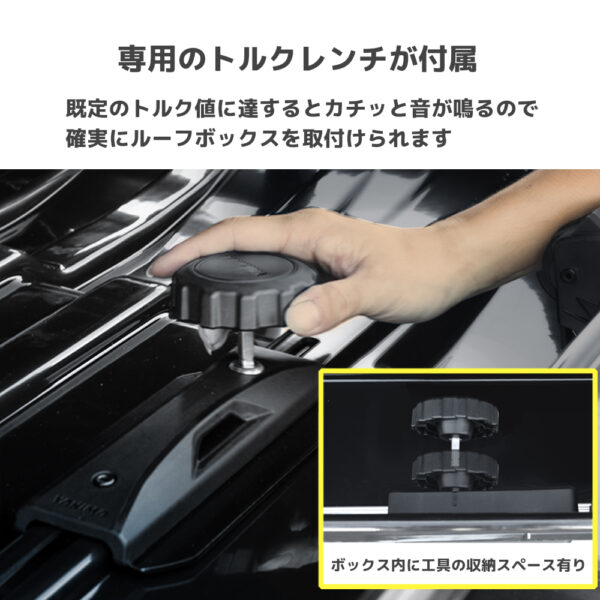 ・金属製のハンドルは使いやすく、ボックス内のギアとボックスを車両にロックします。