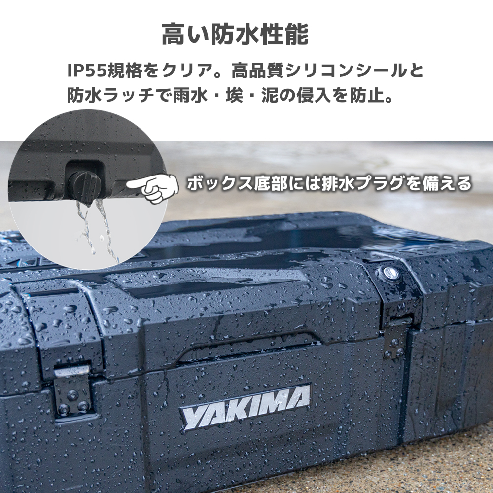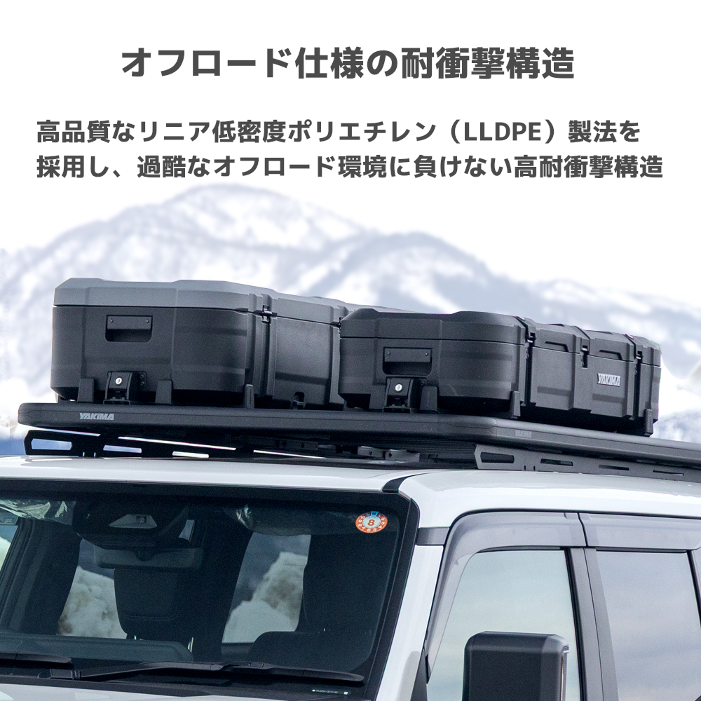 ミリタリー仕様の頑丈なルーフボックスです。IP55をクリアしており、過酷なオフロード環境下でも雨やほこりなどから荷物を守ります。